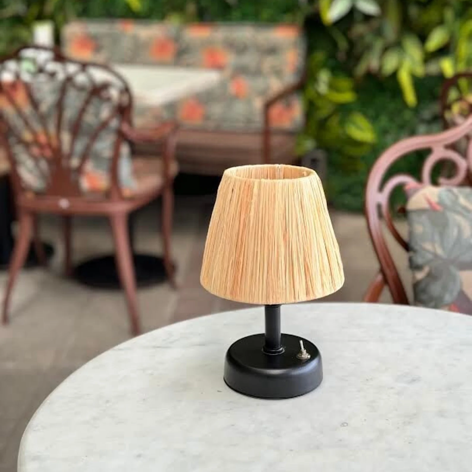 these mini portable lamps have been on our dinner tables at restaurants forever, but they’re so hot right now! i am loving using them not only on an outdoor dinner table, but also you can just throw one wherever you need a little extra light and coziness (your kitchen counter, a side table, on a bookshelf…)