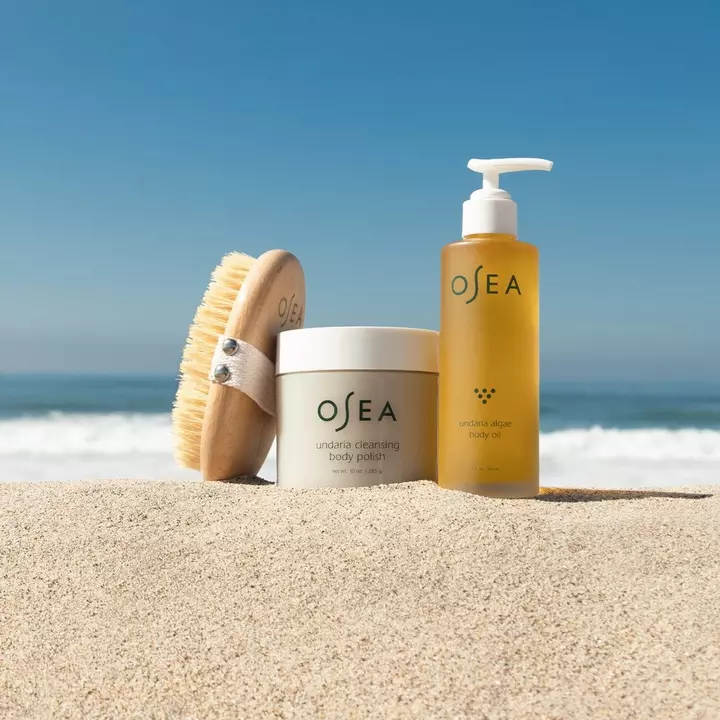 i love osea everything forever. this gift set includes a body brush, body polish and the best body oil ever.