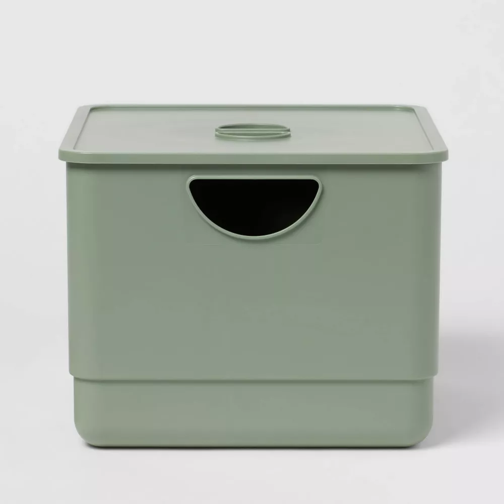 i also got him a little “outbox” — it’s a place where we can put whatever pieces he’s left out away but so they’re still nearby and accessible versus putting back in the drawers. these are the bins we use, ours are just a different size.