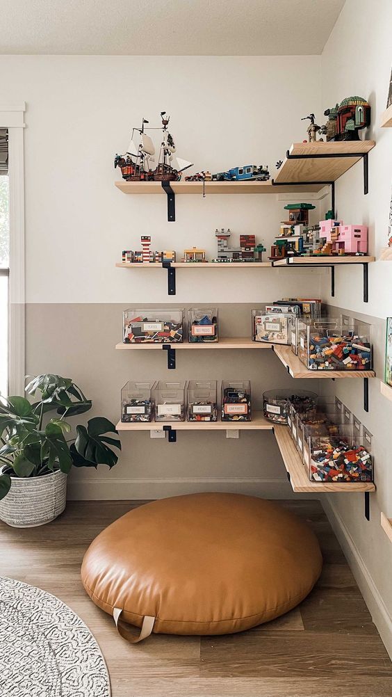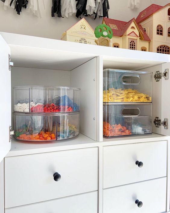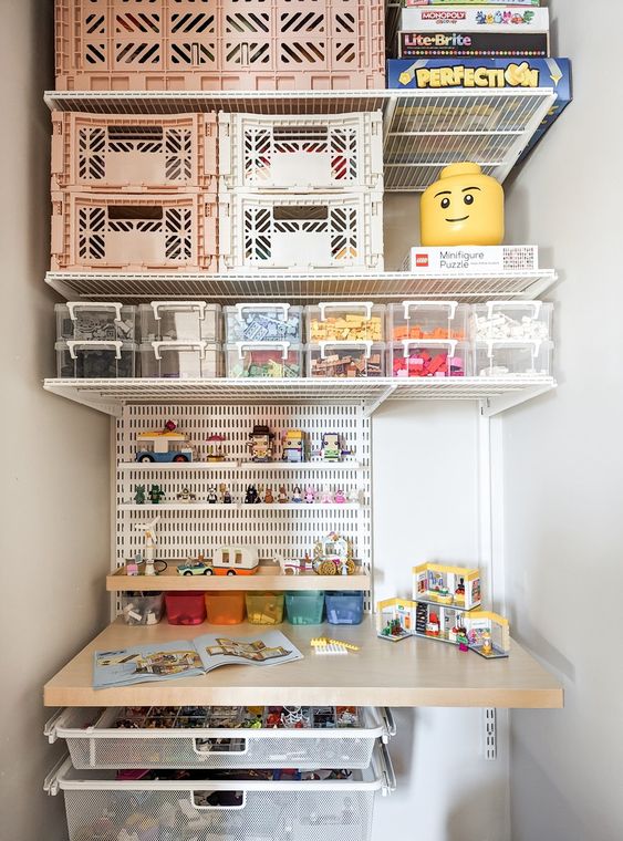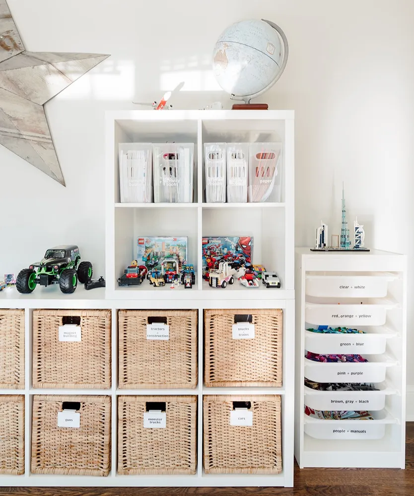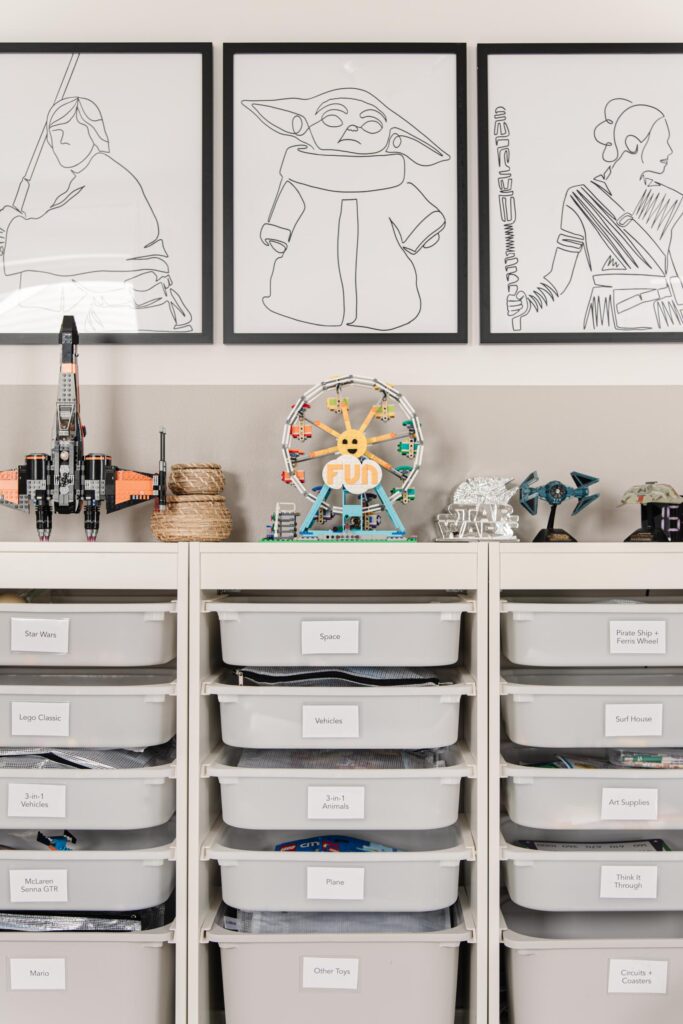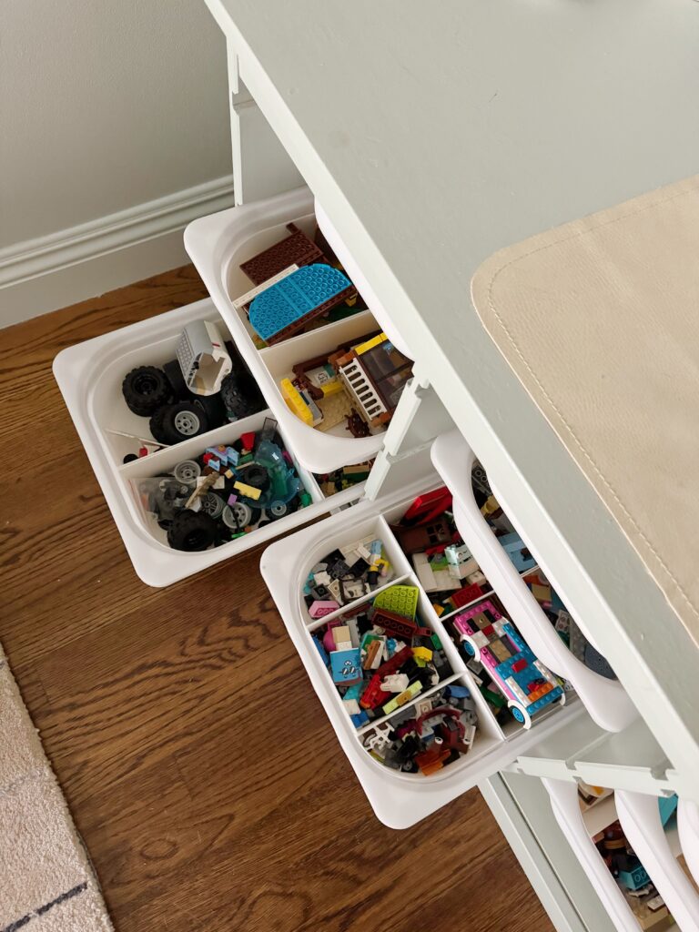 lastly, consider if you will realistically keep up with your system. for example, maybe don’t organize by type if you think you/your kid won’t stay on top of it. or you might end up not sorting the legos at all and that’s totally fine, too.
