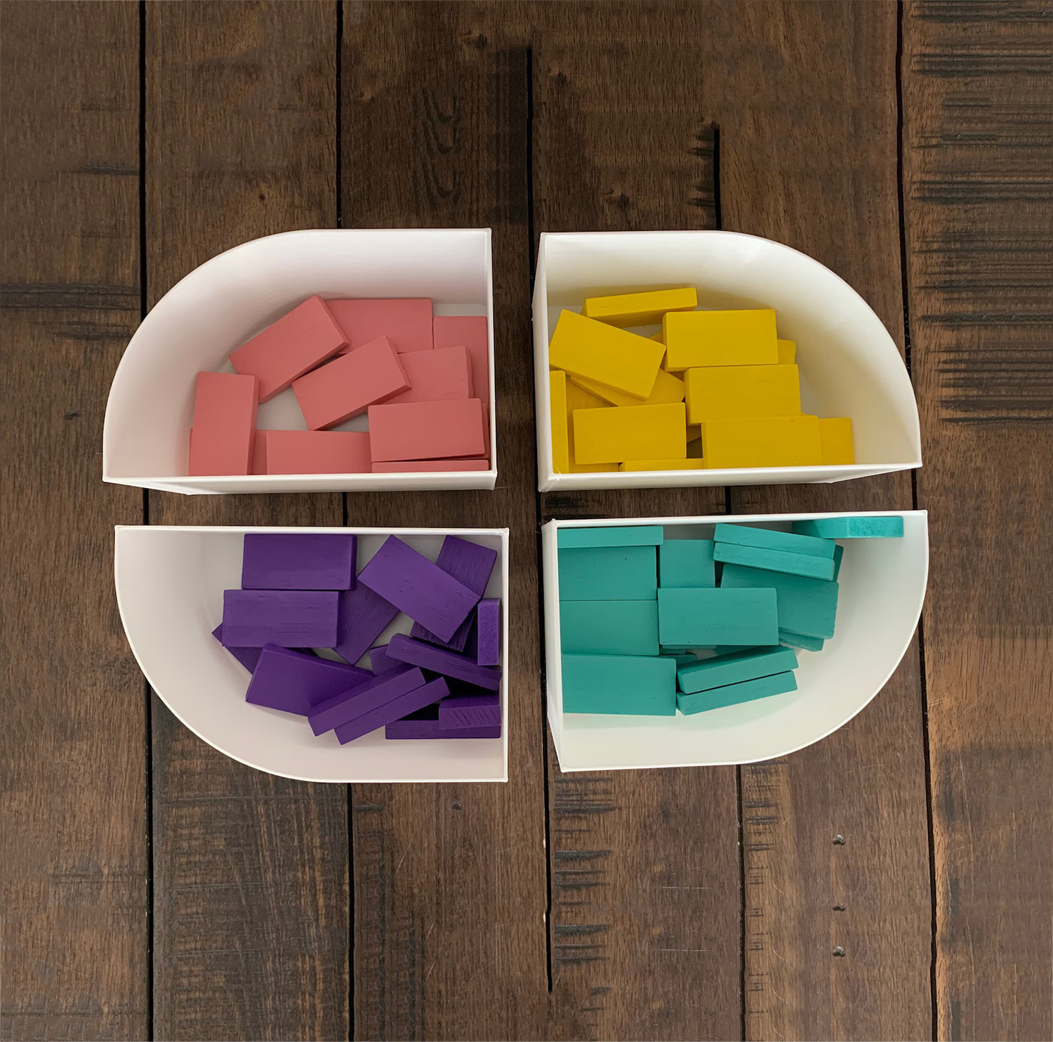 we naively organized by type for 2 days to have it end up in shambles with no real order now. many people warned us, but we didn’t listen and it has NOT stayed tidy. the most important thing for our drawer “system” was to have a place to put everything back and encourage free building. despite the lack of organization, arlo manages to build freely just fine.