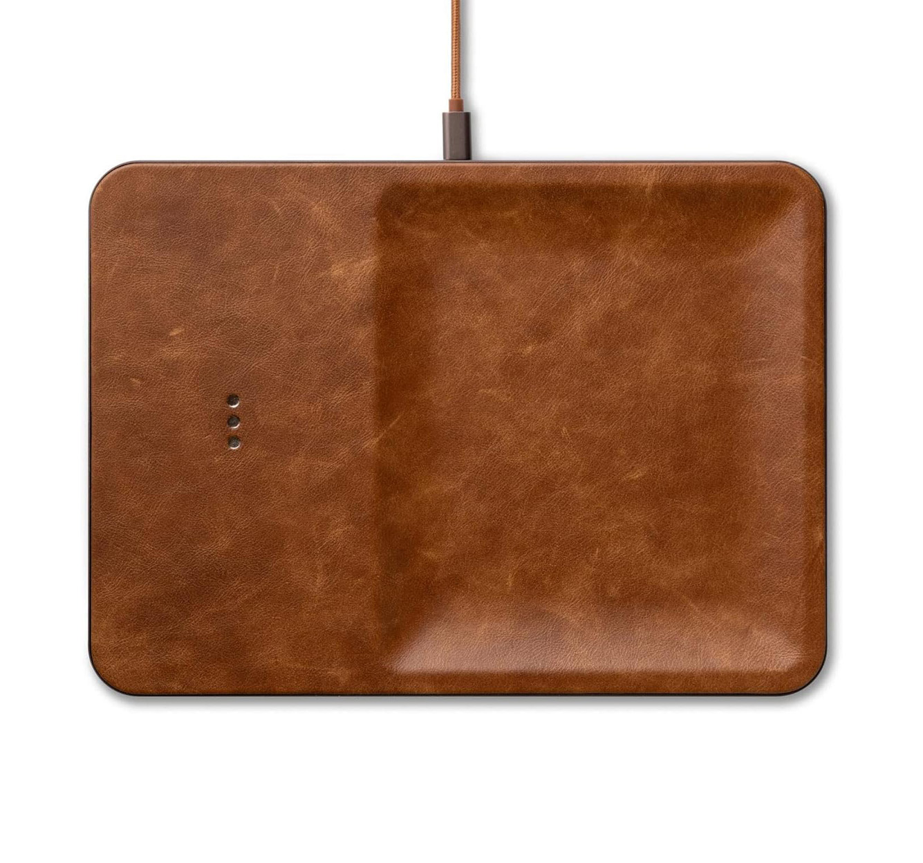the most handsome docking station for their tech! plus a nice way to spruce up their nightstand i’m assuming isn’t styled that well.