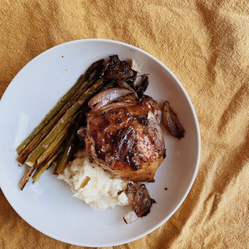 - 4-6 bone-in skin-on chicken thighs