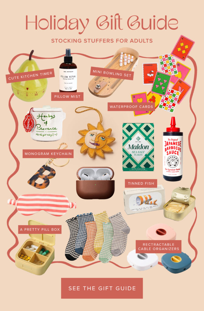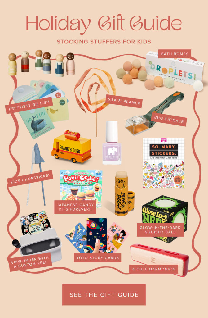 i always find the stocking stuffer gift guides to be the hardest because i have too many ideas and i can’t stay focused on any of them haha — but here it is! lots of ideas for grownups and for kids! hope this helps you!