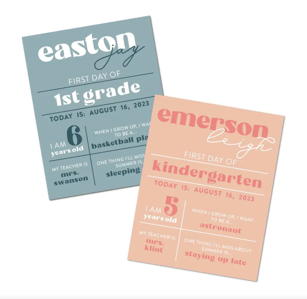 some cute first day / last day of school signs for your kids! most of these are usually pretty corny looking in my opinion but i think i found some good modern ones!