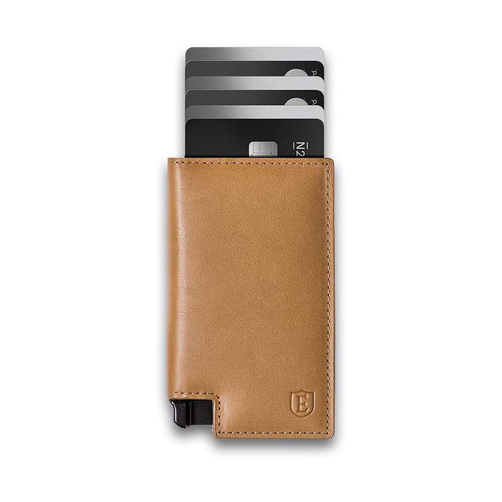 an RFID blocking wallet that also pops up your credit cards!! i got gid this wallet for xmas one year and he’s soooo picky and GUESS WHAT HE LOVES IT.