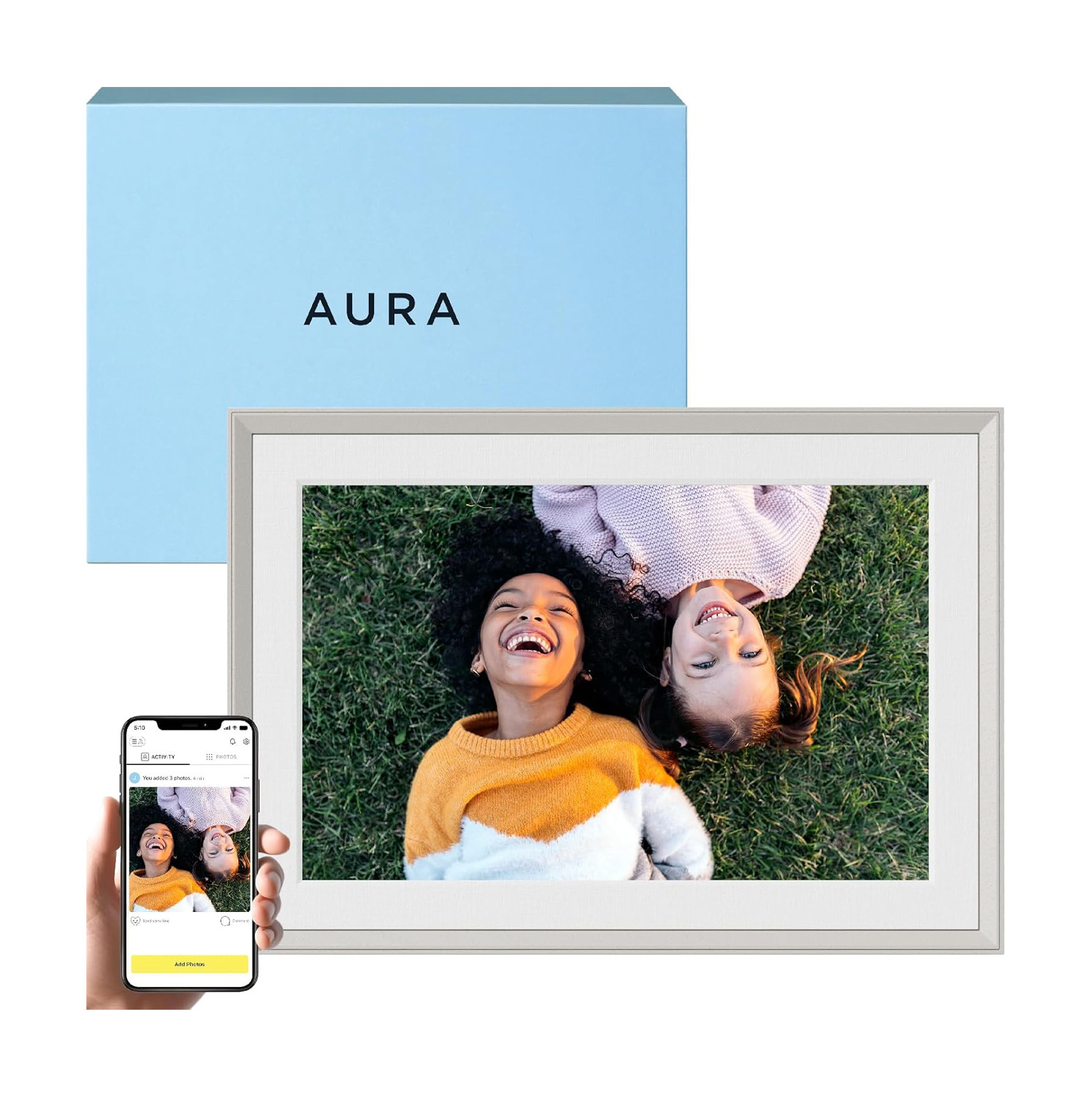 our kids are so attached to our aura frame that i’m going to make sure i can unpack it right away. i love the aura carver because friends and family can easily upload photos through the app. i know it will help my kids feel connected to their grandparents and cousins even from 3,000 miles away.